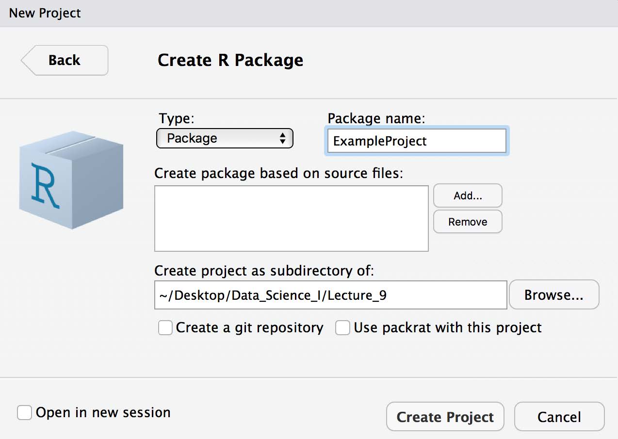 Name the R Package, select the working directory where the R package will be in, and click ‘Create Package’.